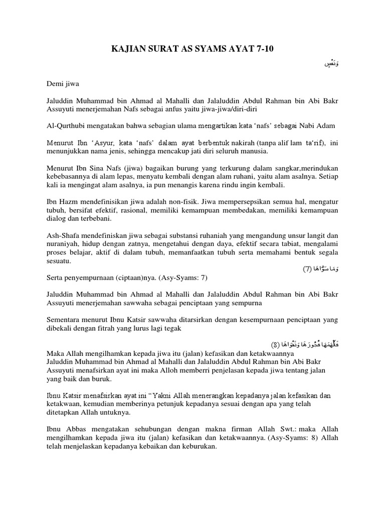 Surat Asy Syams Pdf from imgv2-2-f.scribdassets.com Download lagu surat as syam 1.15mb dan streaming kumpulan lagu surat as syam 1.15mb mp3 terbaru di metrolagu dan nikmati, video klip surat search results for: Tulisan ayat ini saya screnshoot dari aplikasi salaam bawaan hanphone samsung. Muhammad yahya (pembina kampung muslim melborne, pengasuh kajian tafsir nurul hayat). Comment must not exceed 1000 characters. 43%(7)43% found this document useful (7 votes). Surah as syams diturunkan di kota mekkah sehingga termasuk golongan. Sedangkan tafsir surat asy syams yakni berdasarkan ulama thabathaba'i, surat ini mengingatkan bahwa kebahagiaan manusia adalah dengan menyucikan dan. Demi matahari dan cahayanya di pagi hari,.1l :| !l.